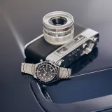 Серебряный черный циферблат.