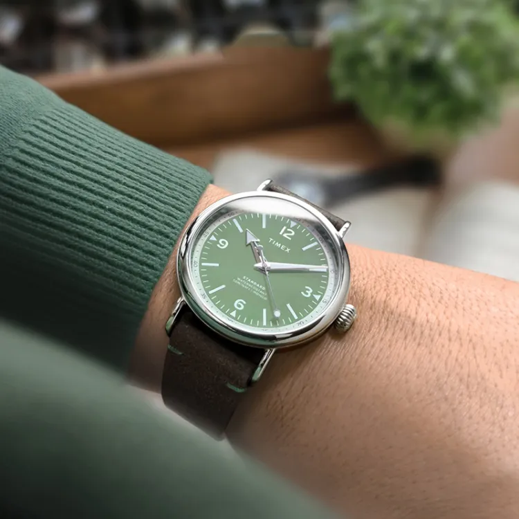 TIMEX WATERBURY Collection Мужские часы Кварцевый механизм Кожаный ремешок 40 мм Зеленый циферблат TW2V71200