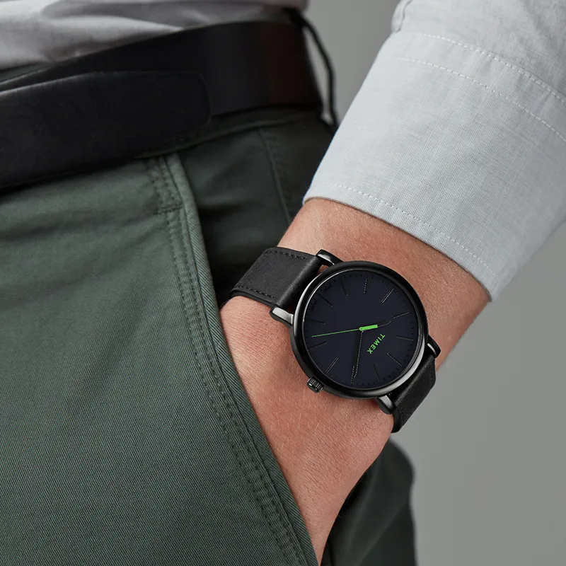 TIMEX TREND Collection Мужские часы Кварцевый механизм Кожаный ремешок Черный циферблат