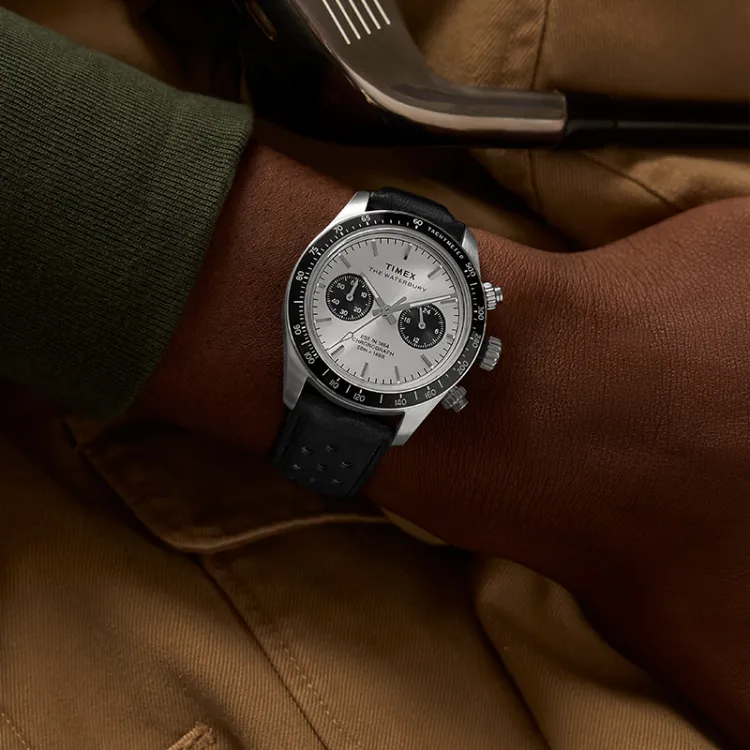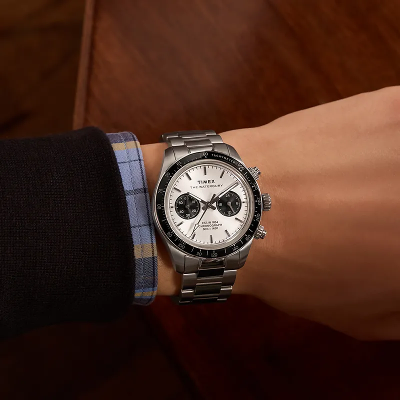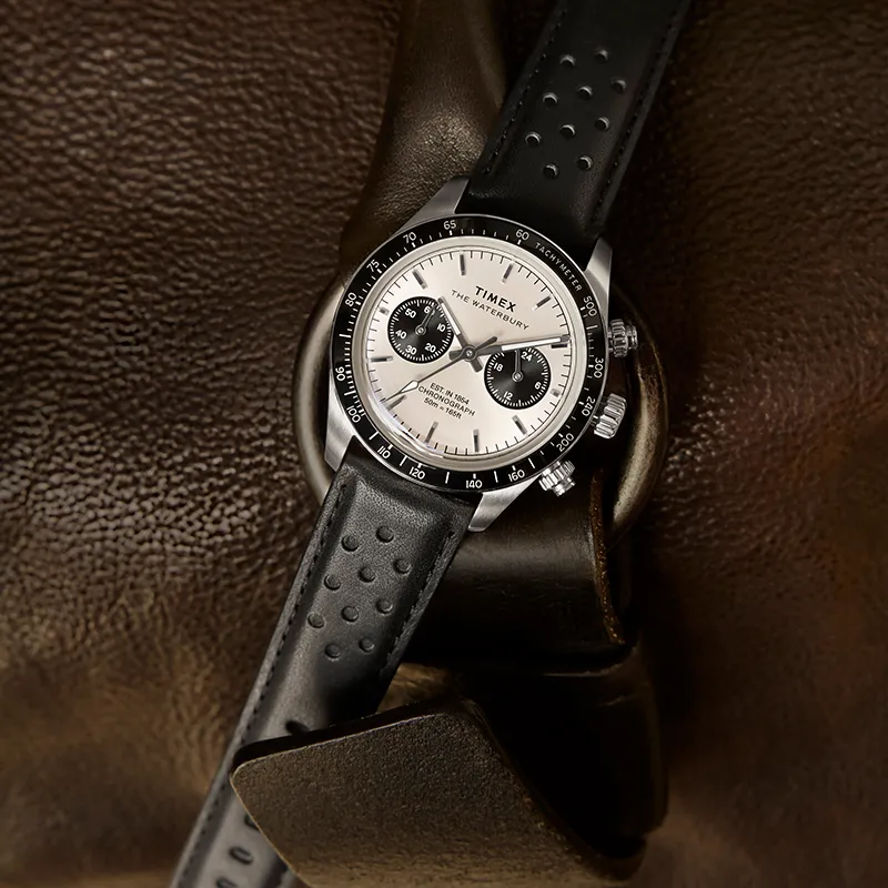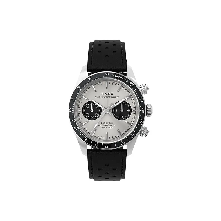 TIMEX WATERBURY Collection Мужские часы Кварцевый механизм Естественная кожа Ремешок Серебристый циферблат