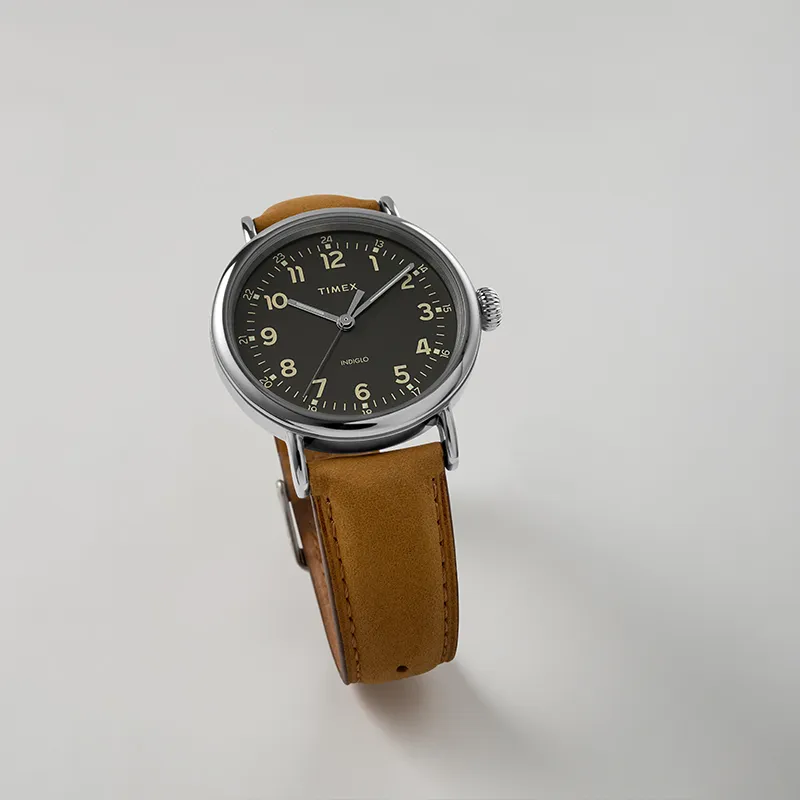 TIMEX WATERBURY Collection Наручные часы Кварцевый механизм Кожаный ремешок 40 Черный циферблат Унисекс TW2V27700