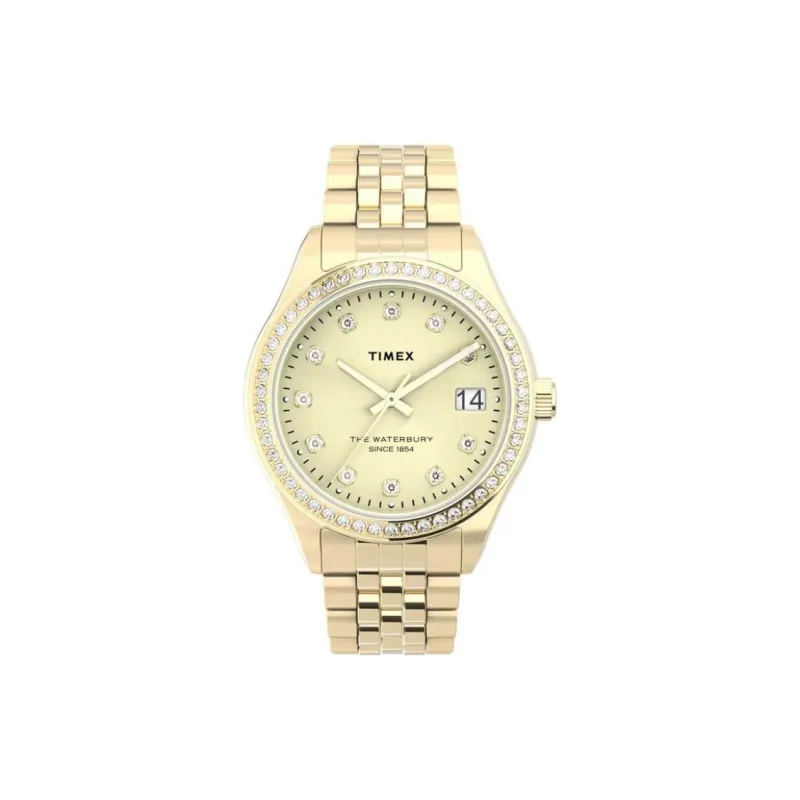 TIMEX WATERBURY Collection Женские часы Кварцевый механизм Ремешок из нержавеющей стали 34 мм Золотой циферблат