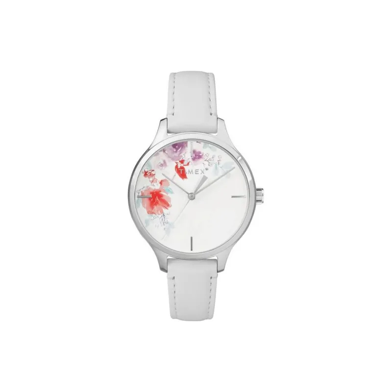 TIMEX Наручные часы Кварцевый механизм Кожаный ремешок 36 мм Белый циферблат Женские часы