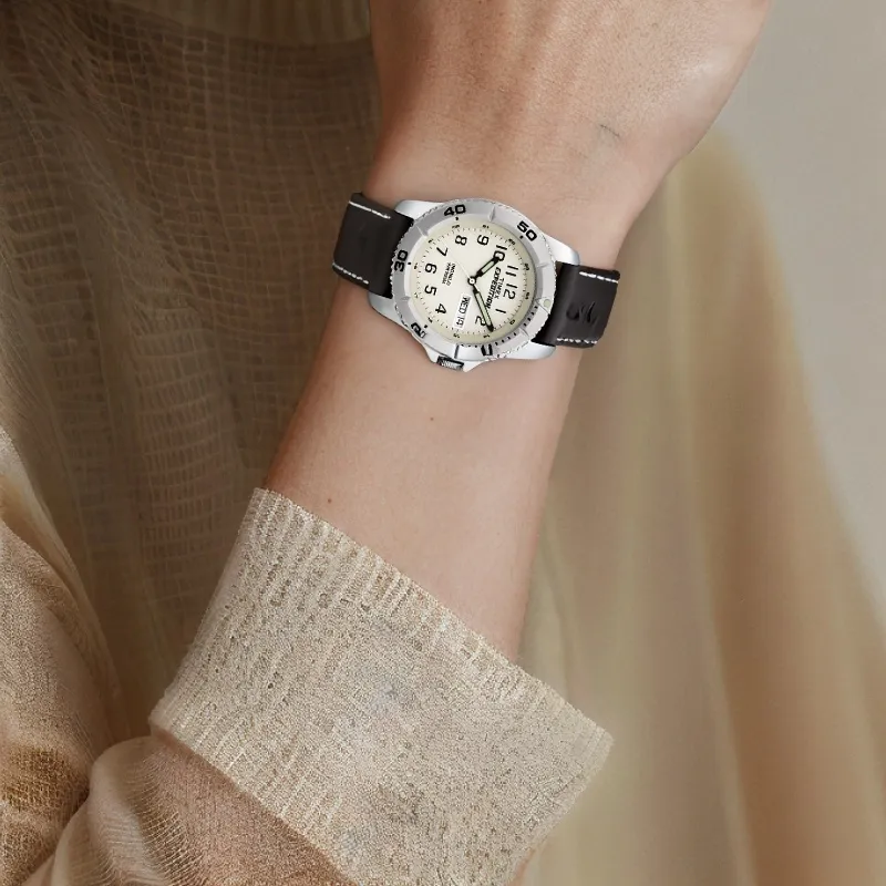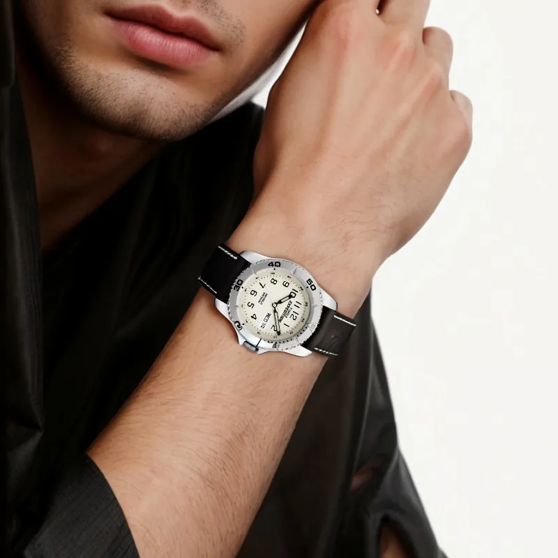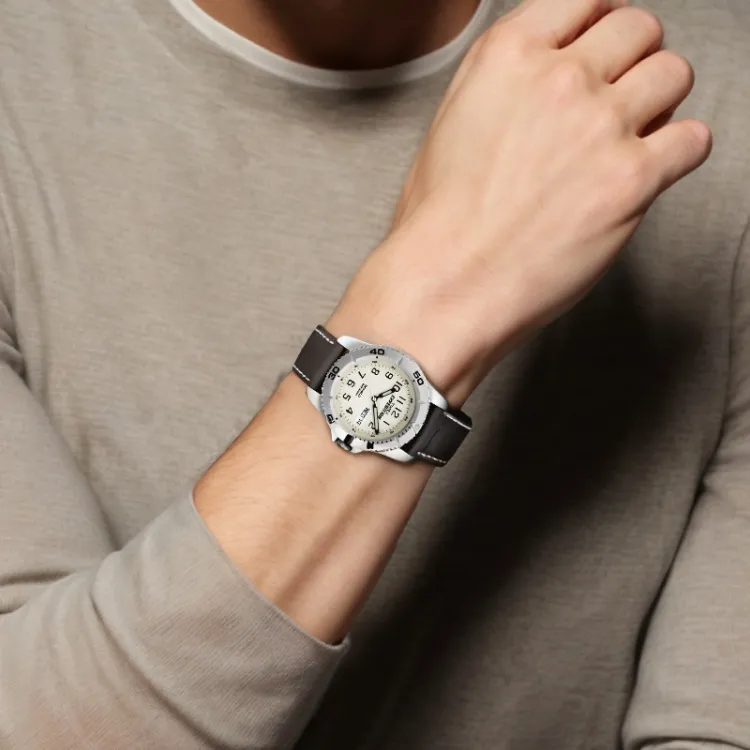 TIMEX Наручные часы Кварцевый механизм Кожаный ремешок 40 мм Белый циферблат Мужские часы