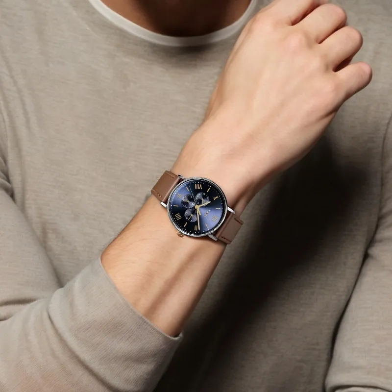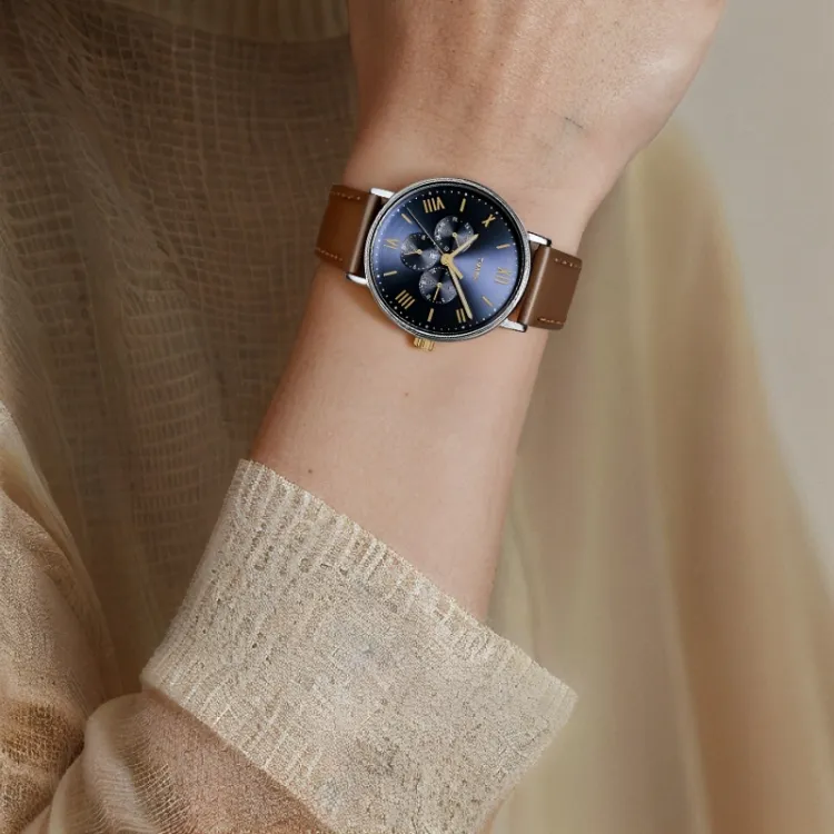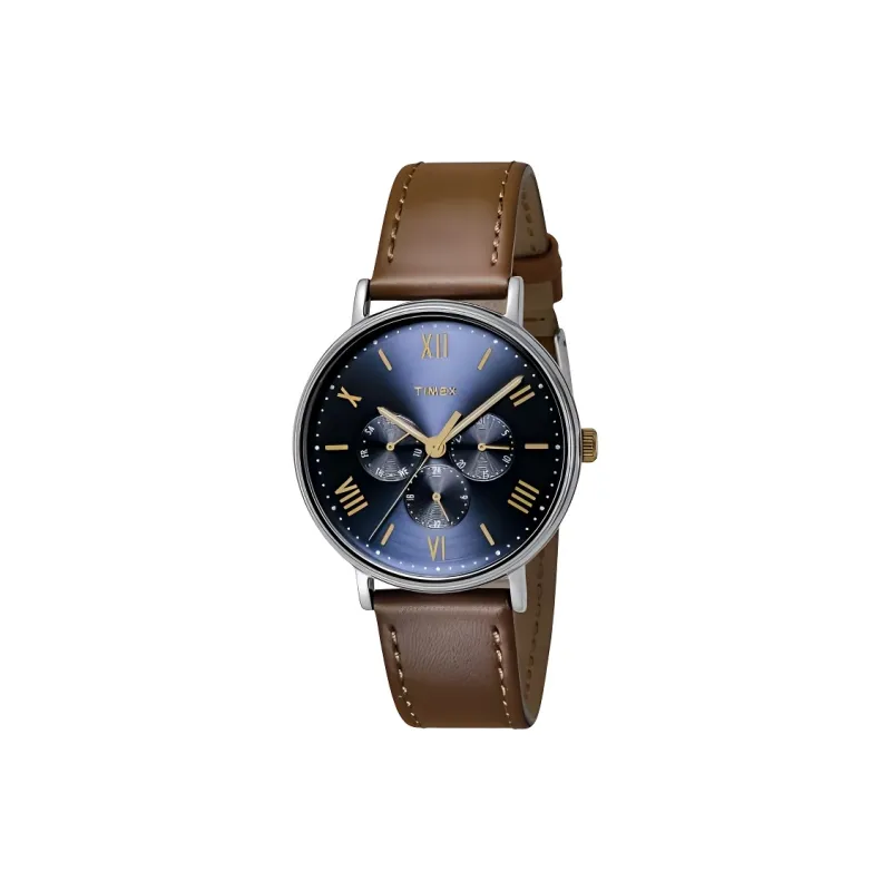 TIMEX Наручные часы Кварцевый механизм Кожаный ремешок 41 мм Синий циферблат Мужские часы