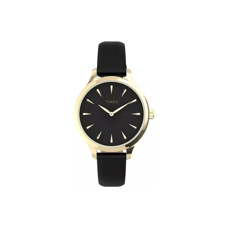 TIMEX Наручные часы Кварцевый механизм Кожаный ремешок 36 мм Черный циферблат Женские часы