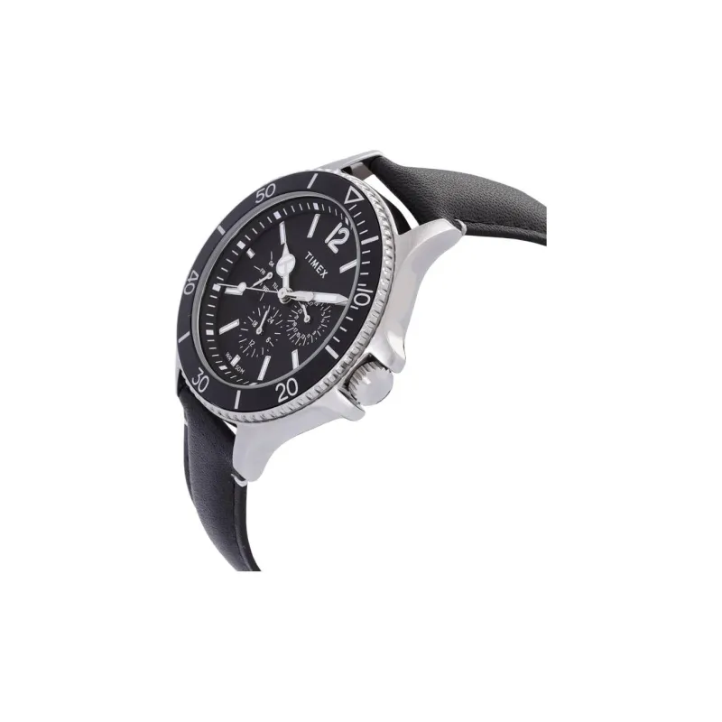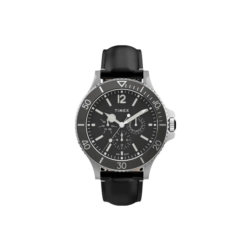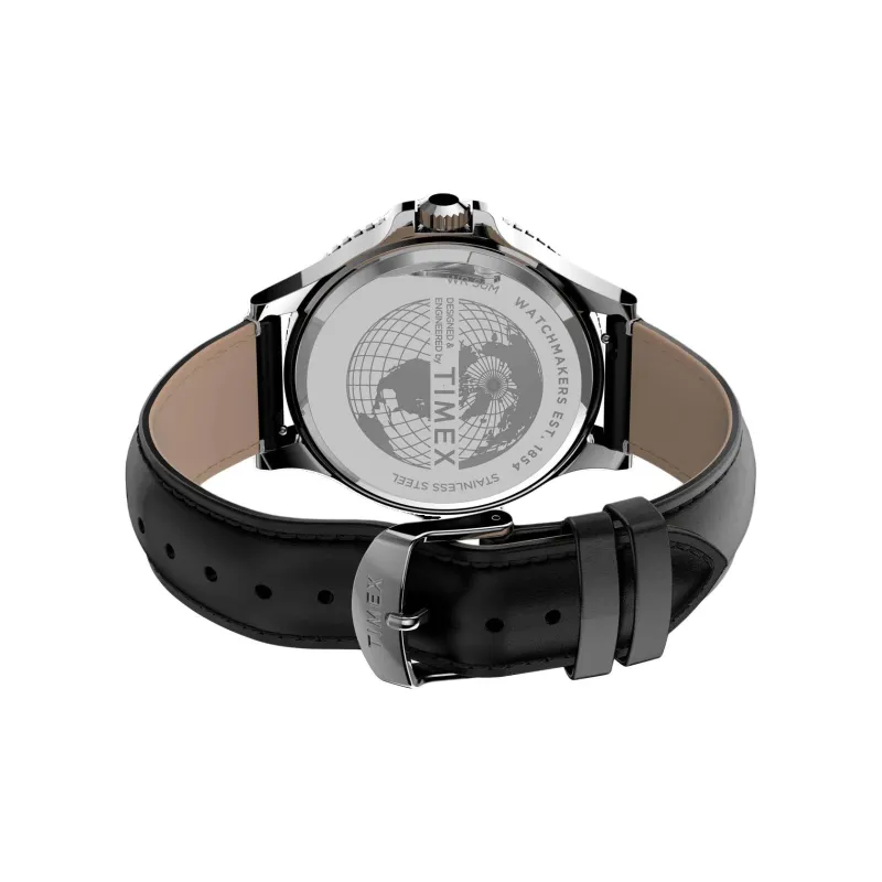 TIMEX Наручные часы Кварцевый механизм Кожаный ремешок 43 мм Черный циферблат Мужские часы
