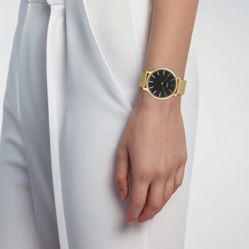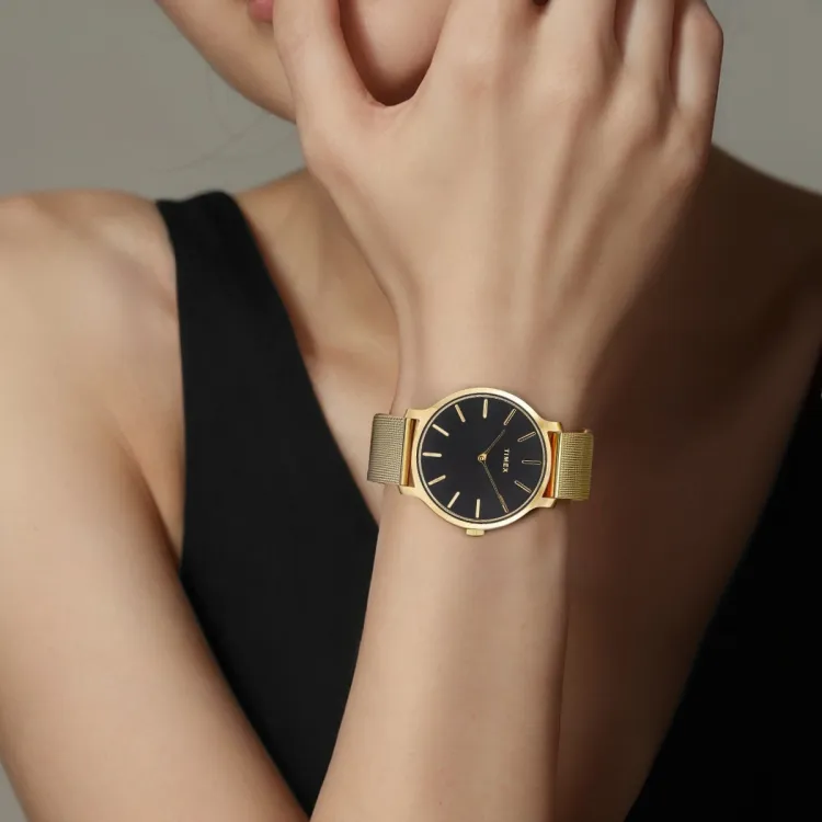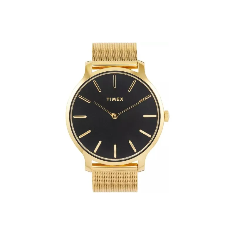 TIMEX Наручные часы Кварцевый механизм Ремешок из нержавеющей стали 38 мм Черный циферблат Женские часы
