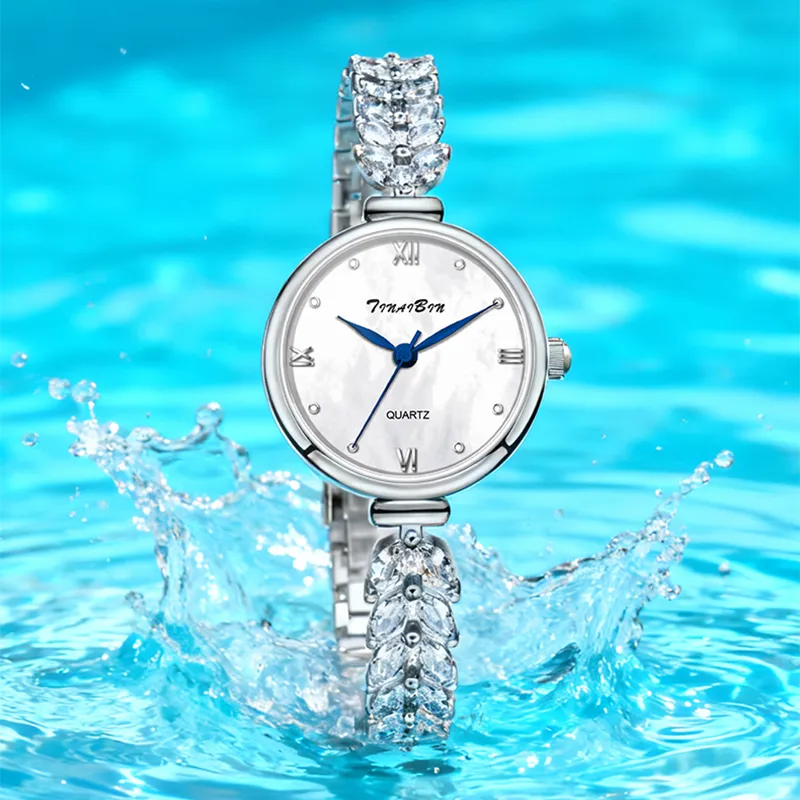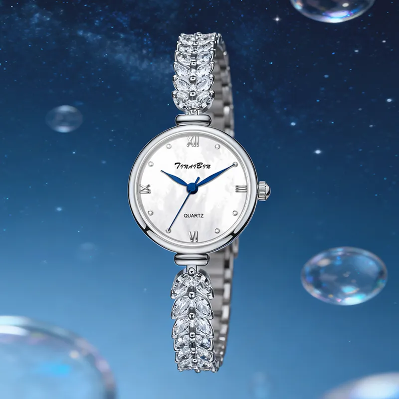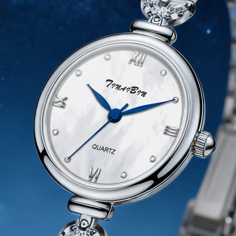 TINAIBIN Серия русалок Кварцевый механизм Сплав Ремешок Часы Женские Жемчужная оболочка Циферблат часов