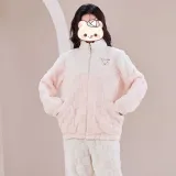 Цвет:Экстра Толстый Жаккард Флис - Блок - Воротник - Стойка - Молния - Светло-Розовый