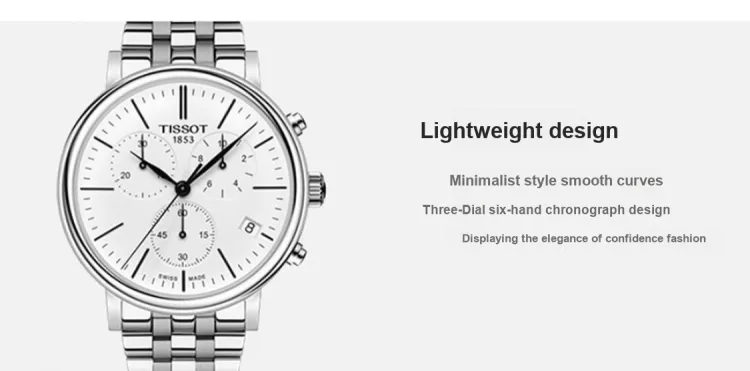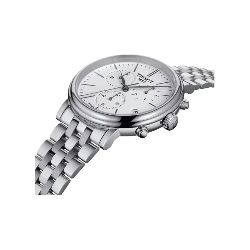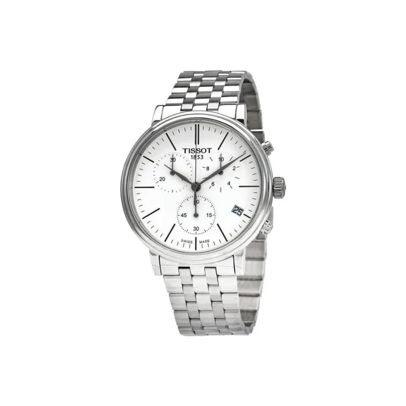 Tissot Carson Elite Series Кварцевый механизм Мужские часы 41 мм Белый циферблат Корпус из нержавеющей стали