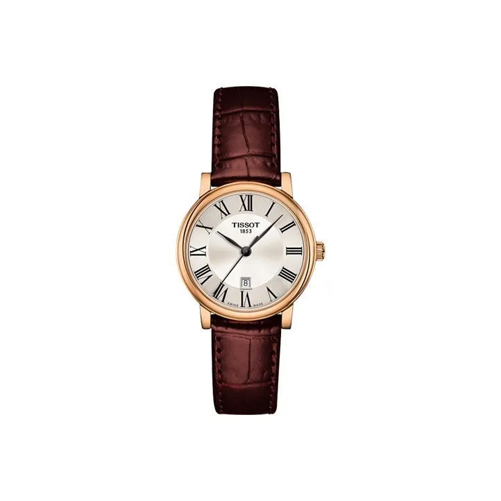 TISSOT Carson Elite Series Кварцевый механизм Женские часы 30 мм Серебристый циферблат Корпус из нержавеющей стали Кожаный ремешок