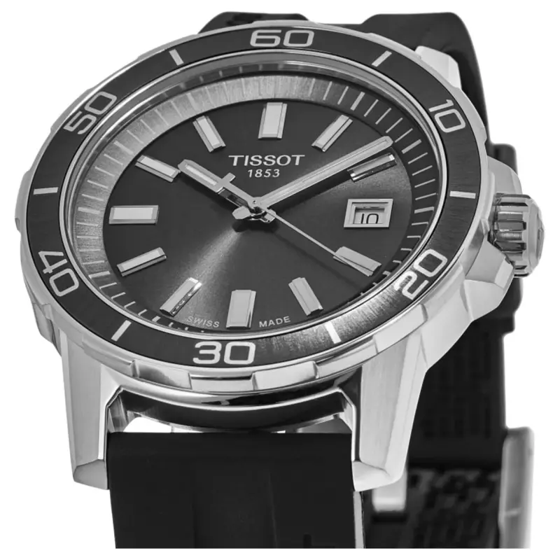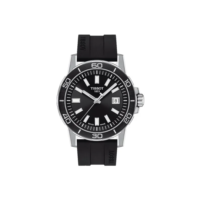 TISSOT GENT Collection Кварцевый механизм Мужские часы Часы 44 мм Черный циферблат Корпус из нержавеющей стали Резиновый ремешок