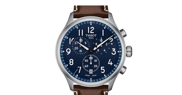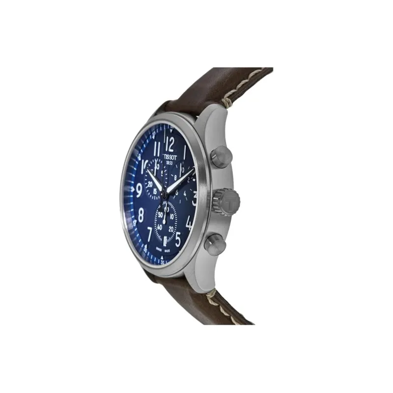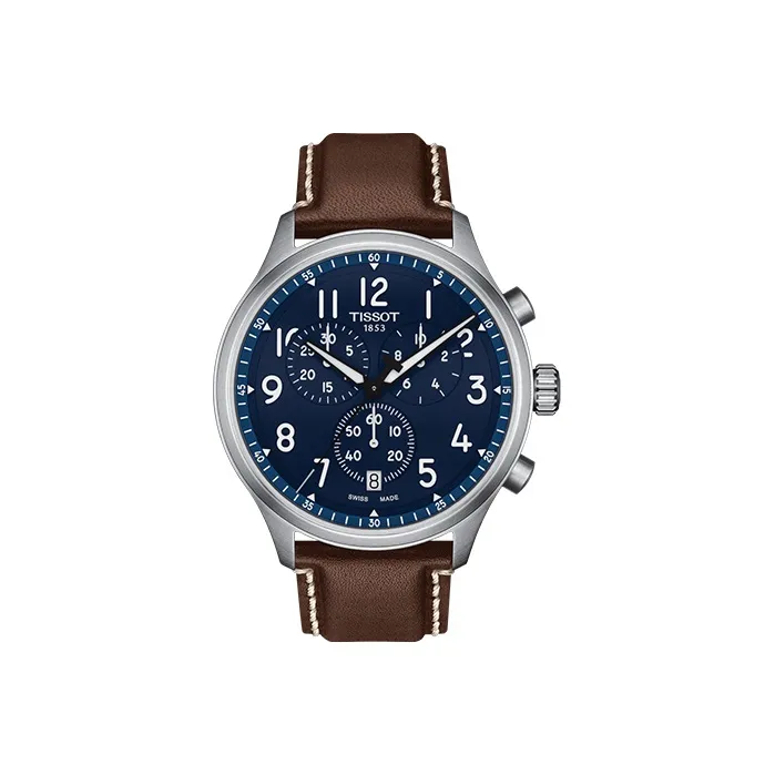 TISSOT CHRONO XL VINTAGE Collection Кварцевый механизм Мужские часы 45 мм Синий циферблат Корпус из нержавеющей стали Кожаный ремешок