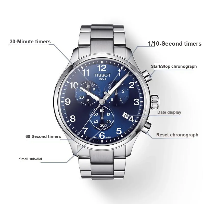 TISSOT Speed Run Series Кварцевый механизм Мужские часы Часы 45 мм Синий циферблат