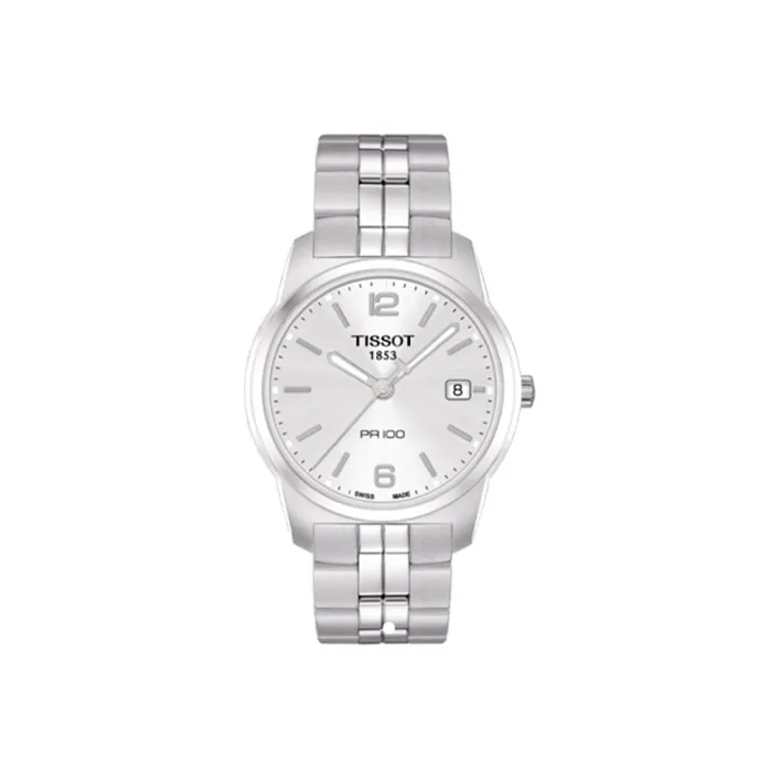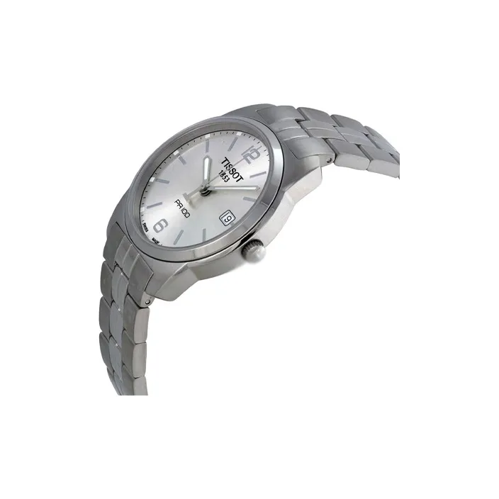 Tissot PR100 Collection Кварцевый механизм Мужские часы Циферблат 36,6 мм Серебристый Нержавеющий стальной ремешок
