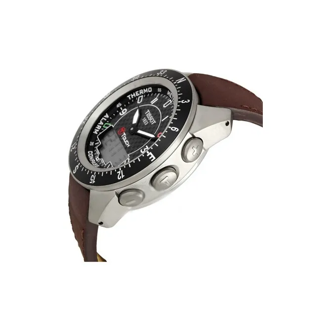 TISSOT T Touch Smart Collection Кварцевый механизм Мужские часы Часы 43,6 мм Черный циферблат Титан Корпус часов Кожаный ремешок