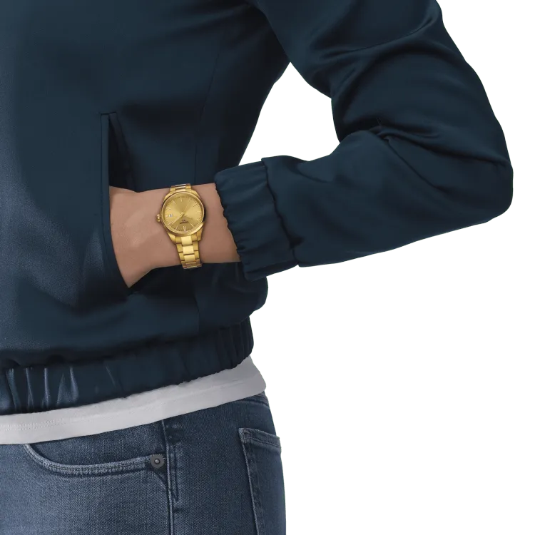 Tissot PR100 Collection Кварцевый механизм Женские часы 34 мм Шампанский циферблат Корпус из нержавеющей стали
