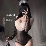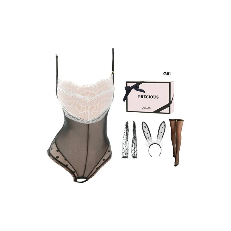 Цвет:Черный, размер Extra Large [Ободок + Открытый комбинезон с открытой промежностью + Накрывающие рукава *2] + Черные длинные чулки + [Коробка]