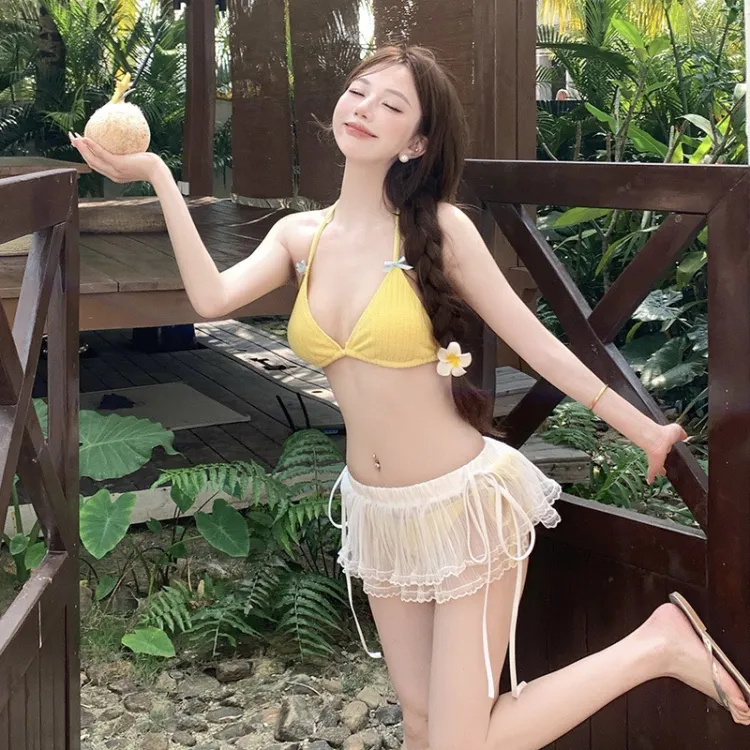 Желтый бикини, купальник, набор из трех предметов + [коробка]