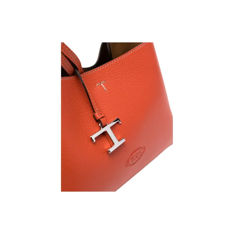TOD'S Телячья кожа Тоут Сумка Сумка для покупок Сумка через плечо Сумка Мини Женская Жжено-оранжевая
