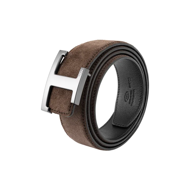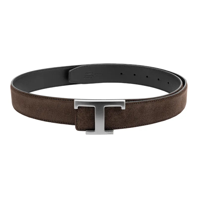 TOD'S Двойной Sided T-образный Логотип Украшение с плавной пряжкой Кожаные ремни Мужской Коричневый Ширина 3,5 см