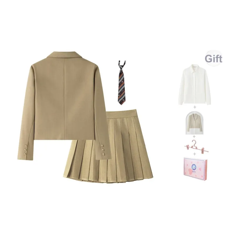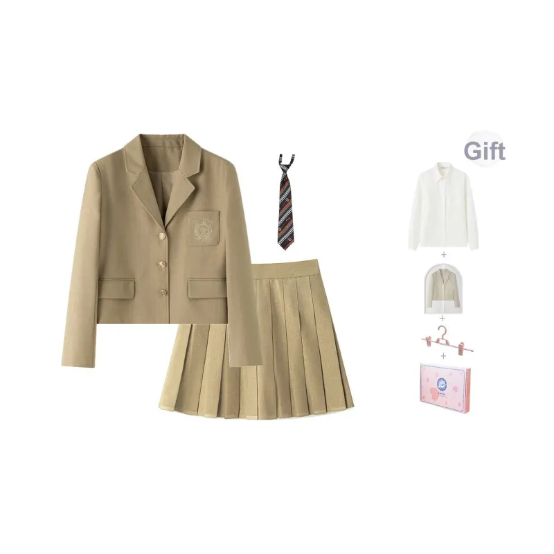 Комплект:Хаки костюм + юбка (включает леггинсы) с подарками: бесплатная рубашка + галстук + пылезащитный чехол