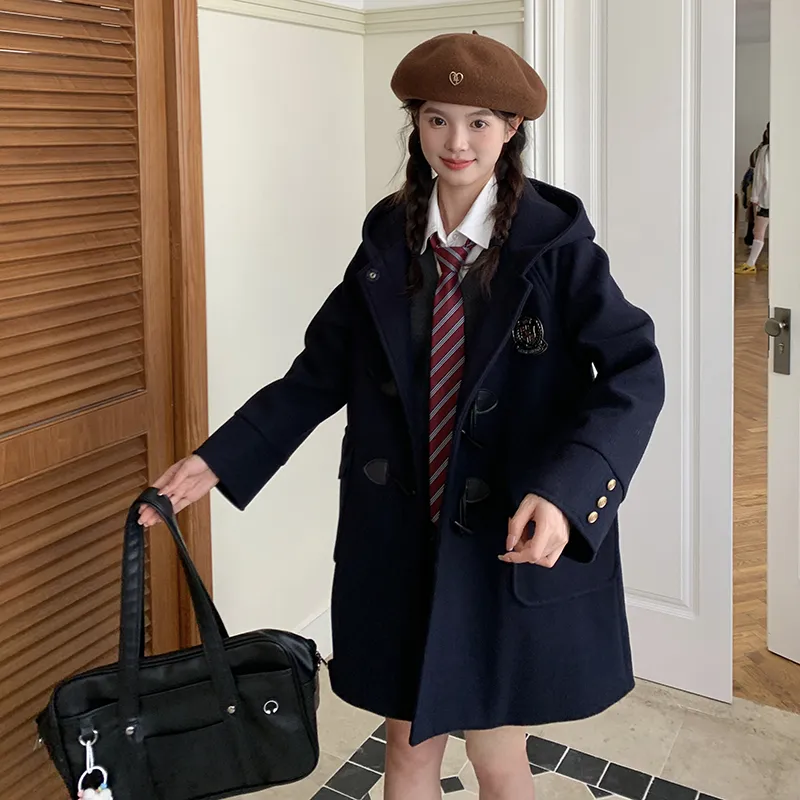 Цвет:Темно-синий синий пальто (утепленный подклад) с бесплатным значком