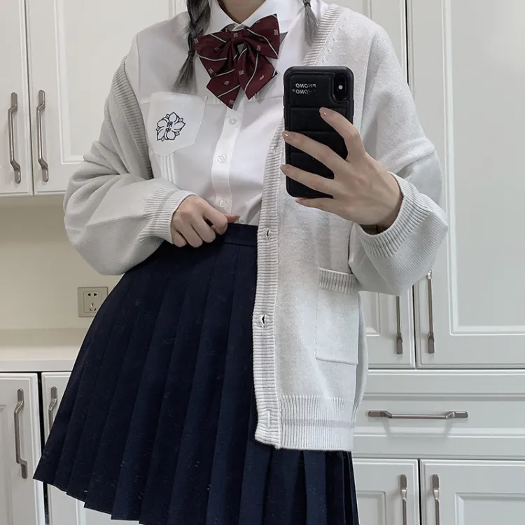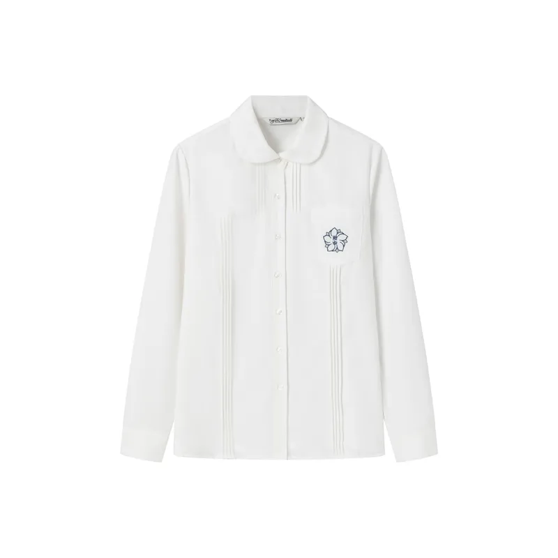 Цвет:Сакура Белая Длинно-Рукавная Рубашка