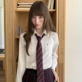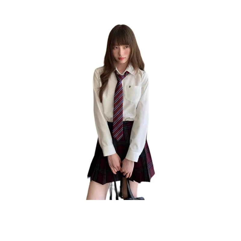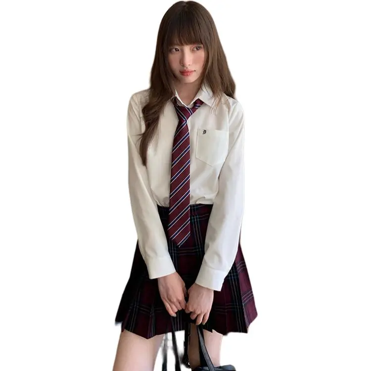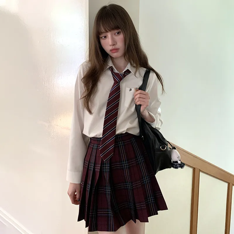 Комплект:Белая рубашка + малиновая ледяная юбка средней длины: 42 см + галстук