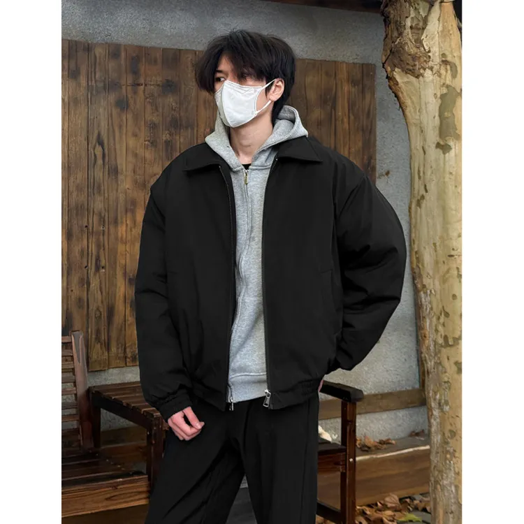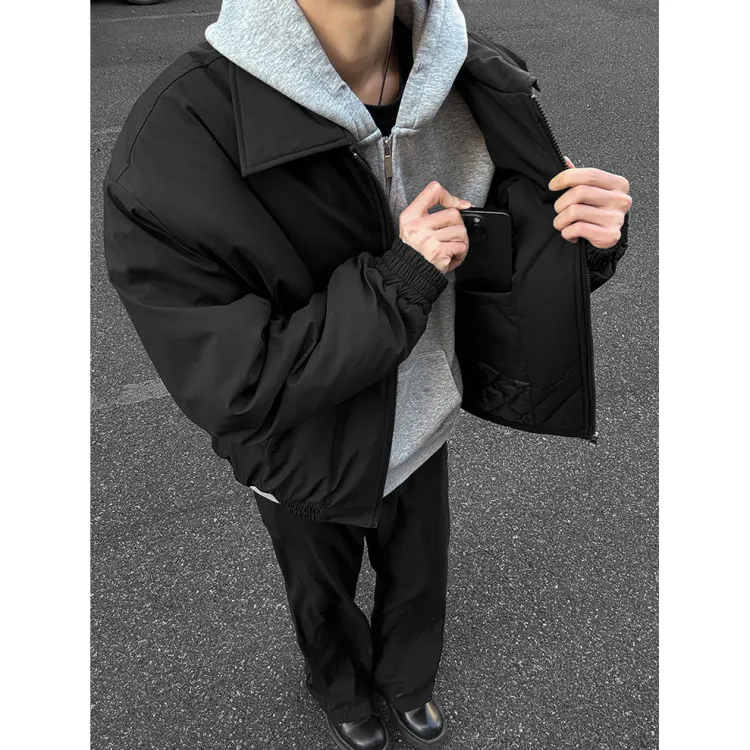 Темно-синий синий хлопковый пуховик + черные штаны с флисовой подкладкой
