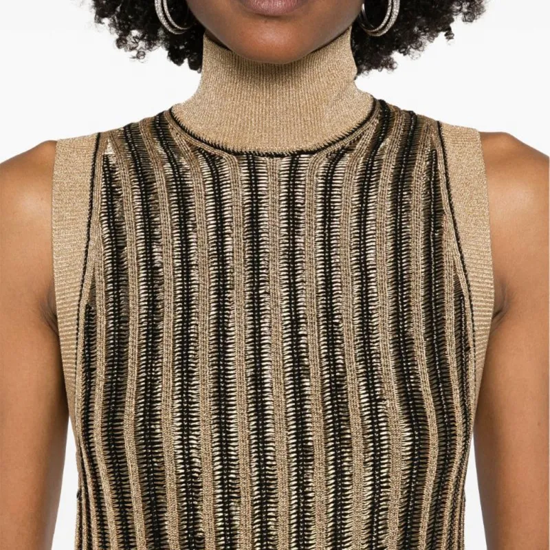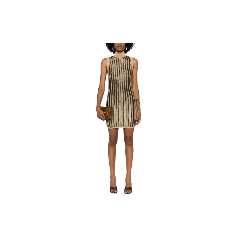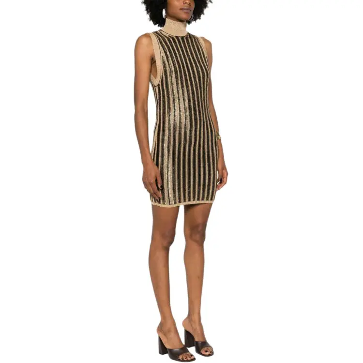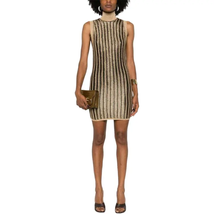TF SS24 Sleeveless Dress Women's Black Gold TF SS24 Без рукавов Платье Женское Черное Золото