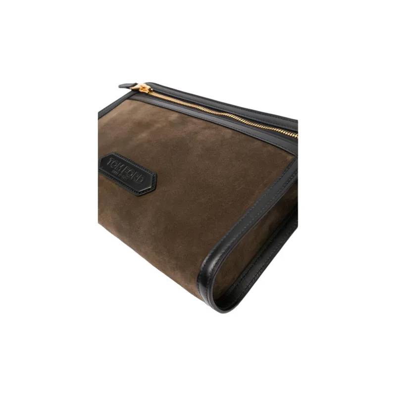 TOM FORD Замша Клатч Мужской Оливково-зеленый