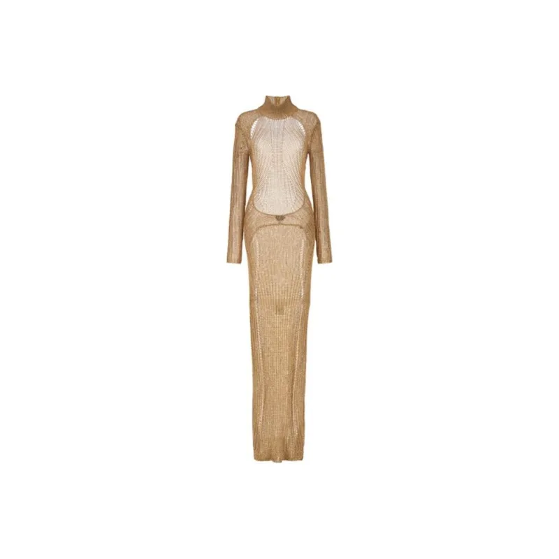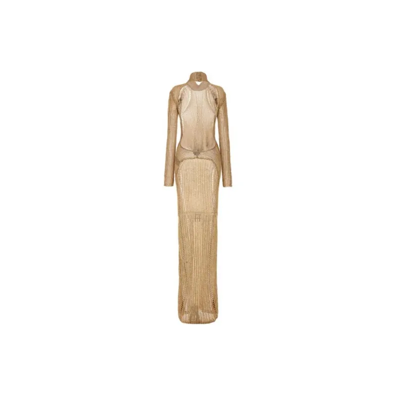 TOM FORD Длинное платье с длинными рукавами женское золотое