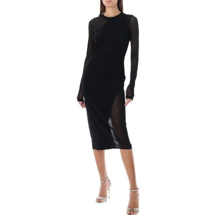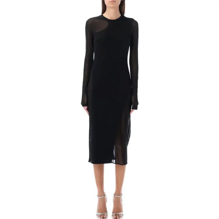 TF SS23 Длинное Платье с Длинными Рукавами Женское Черное