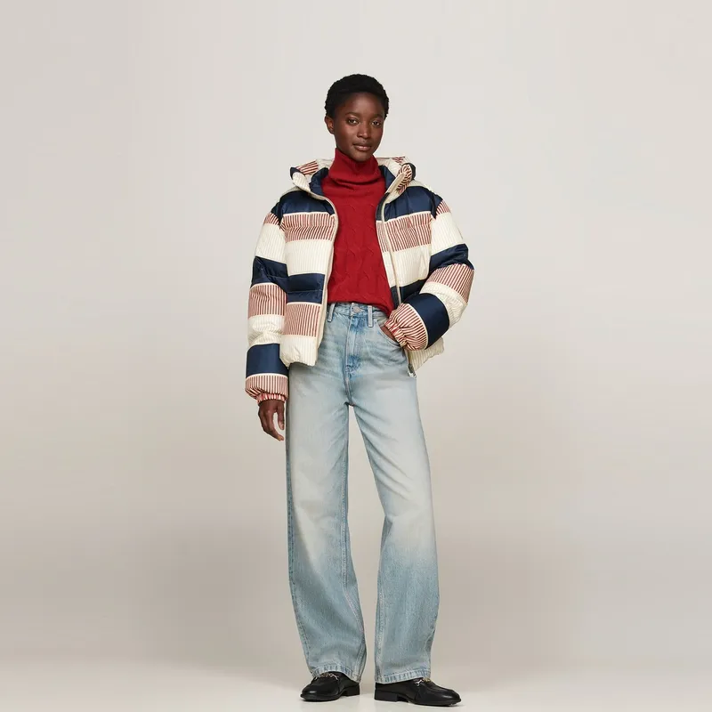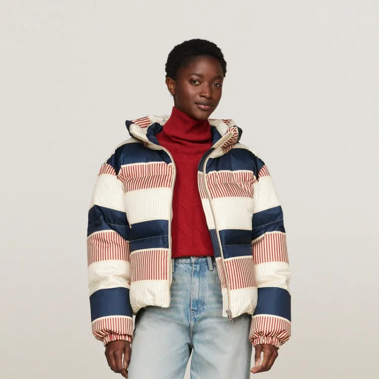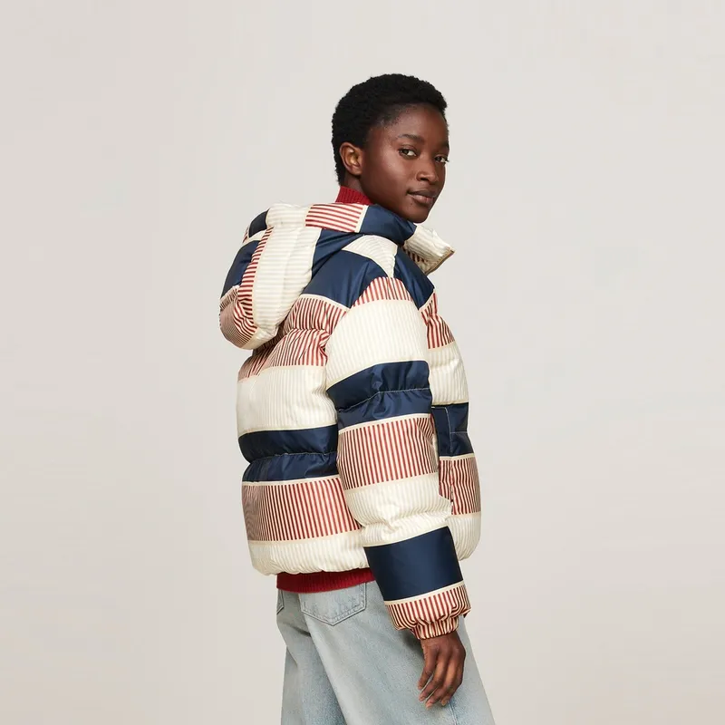 Tommy Hilfiger Пуховик Женские Розовый Синий и Белые полосы