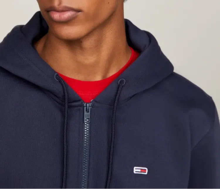 Tommy Hilfiger Organic Cotton Fleece Zip Thru HOODY Hoodie Sweatshirt Men's Marine Blue