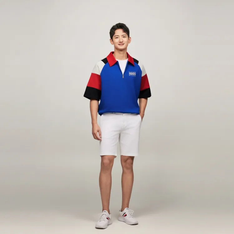 Tommy Hilfiger Поло Мужское Синий Красный и Белый
