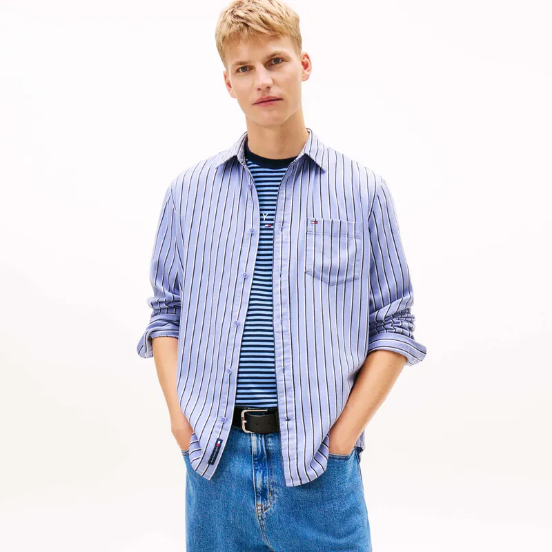 Tommy Hilfiger Синие Полосы C5X Мужские Рубашки