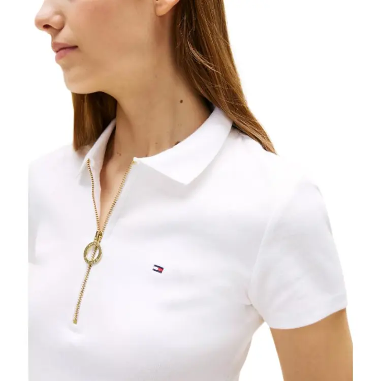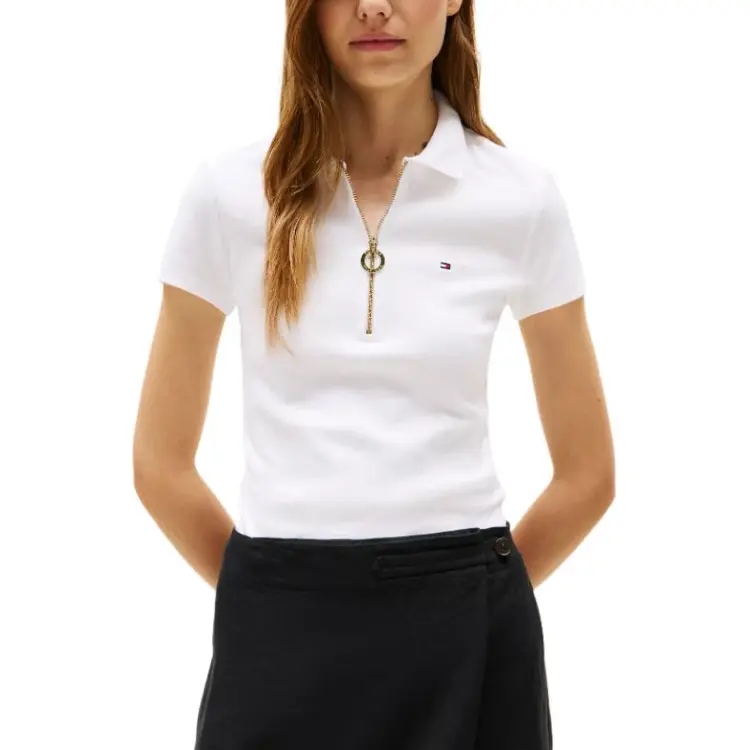Tommy Hilfiger Slim Fit Essential Zip POLO T Рубашки Поло Женская Белая