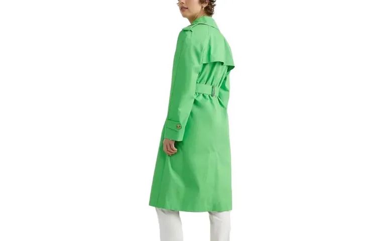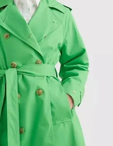 Tommy Hilfiger Твердый Двойной Тренчкот Куртки Весна Лайм Тренчкот Женские Зеленый