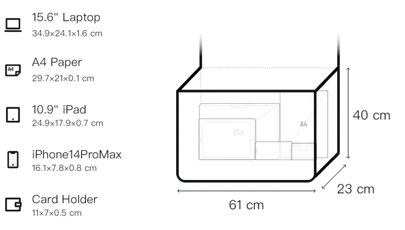 Д61*Ш23*В40см