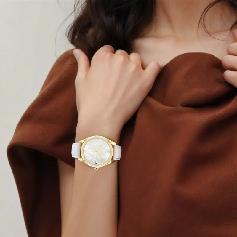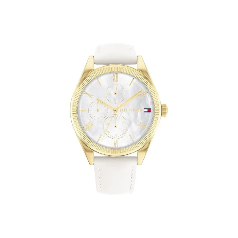 Tommy Hilfiger Наручные часы Кварцевый механизм Кожаный ремешок 38 мм Жемчужная раковина Циферблат Цвет Женские часы