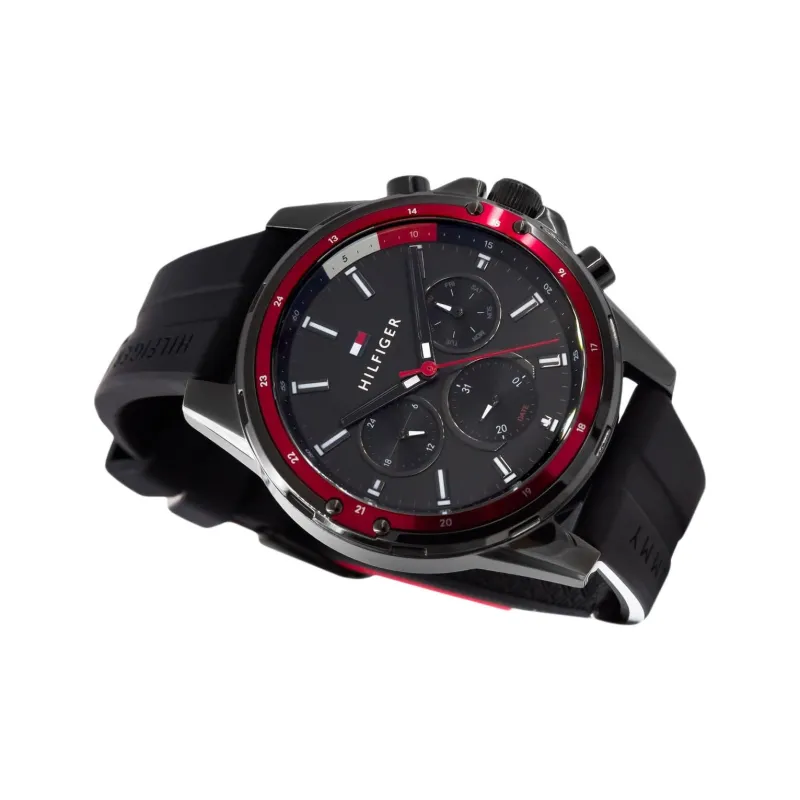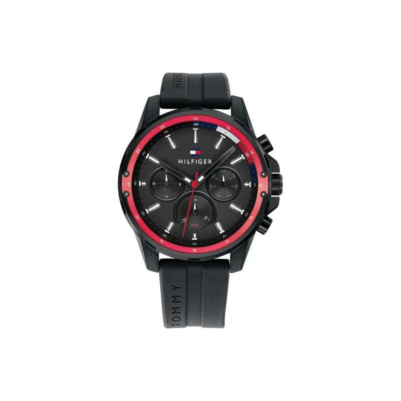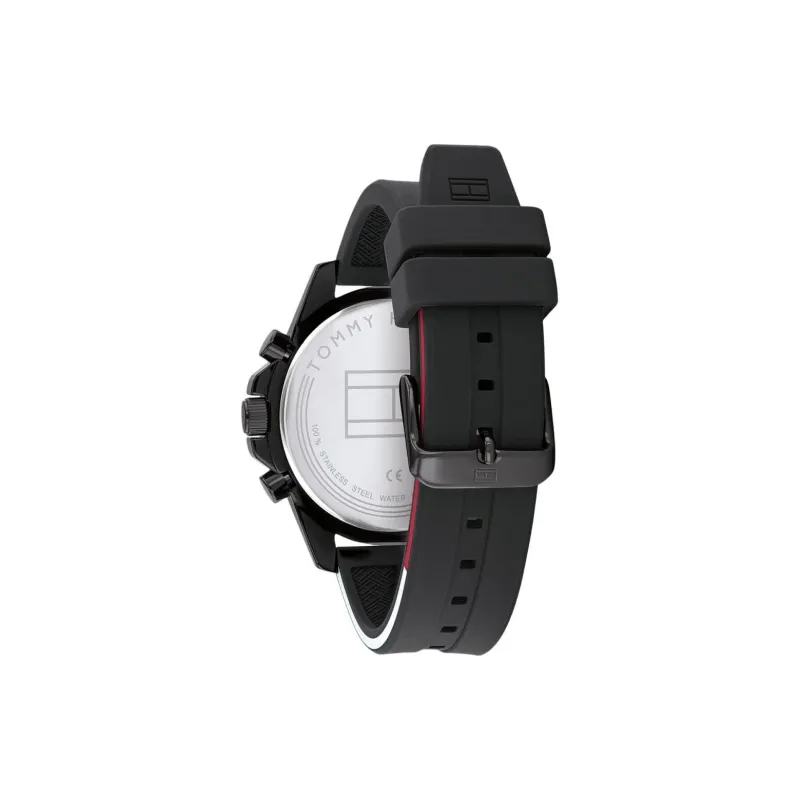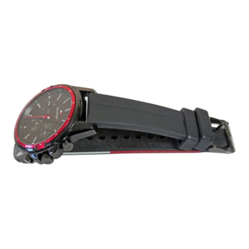 Tommy Hilfiger Мужские часы Кварцевый механизм Силиконовый ремешок 45 мм Черный циферблат