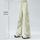 Цвет:[Mock Карман Парашютные брюки] Кремовый Лаймово-зеленый (Тангсия Логотип на штанах)