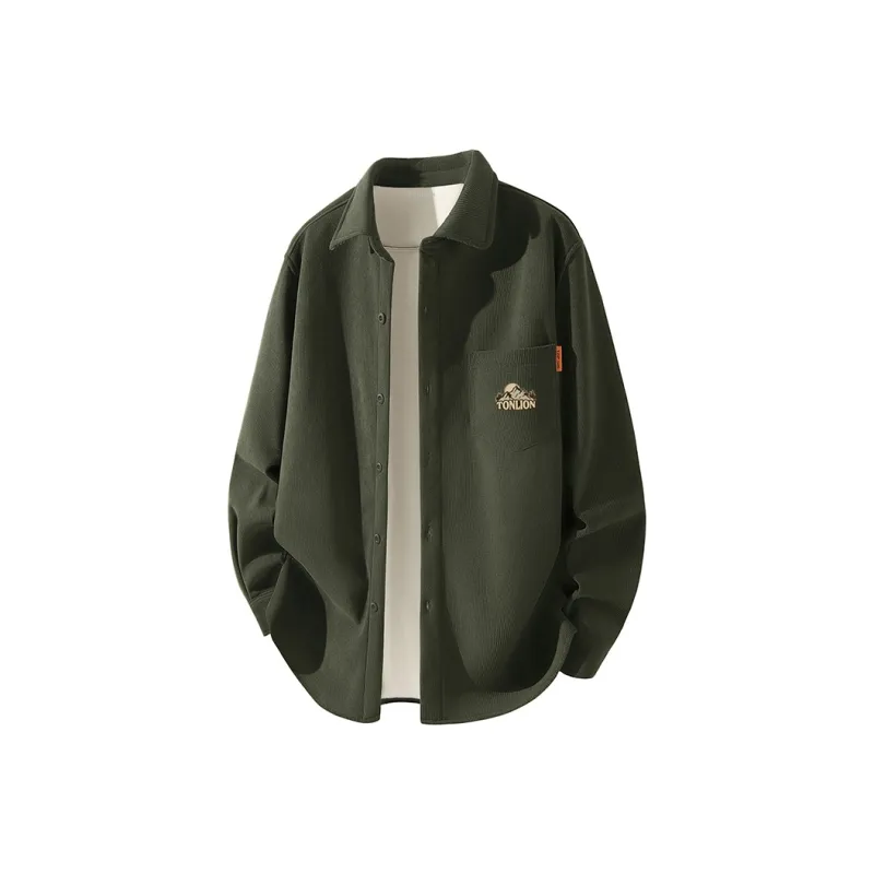 [Флисовая подкладка, вельвет, рубашка] Оливково-зеленый (Логотип на груди "Рассвет гор" в стиле Tb)