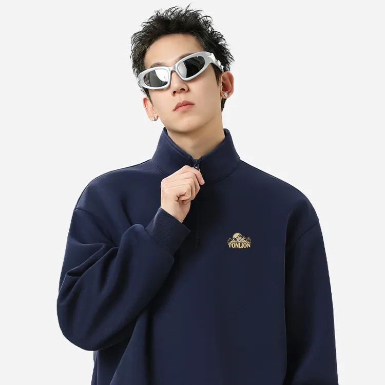 [Half-Zipper Sweatshirt] Темно-синий (Логотип на груди "Рассвет гор" в стиле Tb)