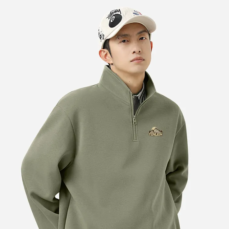[Half-Zipper Sweatshirt] Светлый бежевый (Логотип на груди "Рассвет гор" Tb)
