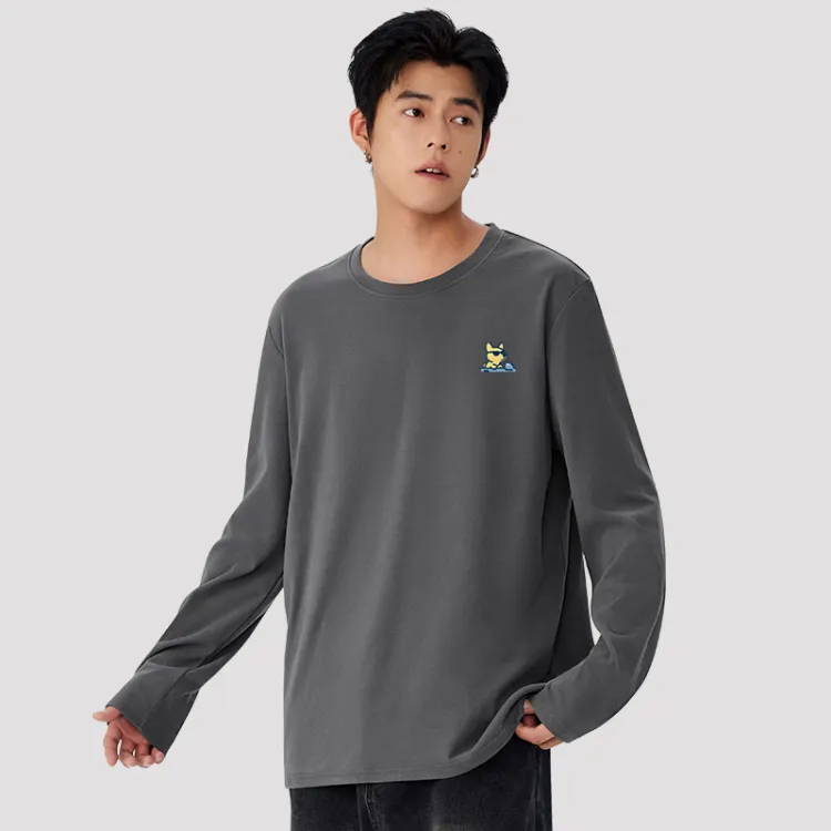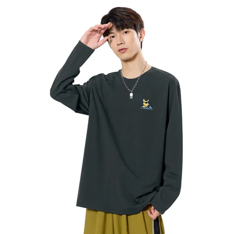 100% cotton, длинный рукав, темно-серый (Tb Car, прохладный, собака, логотип на груди)