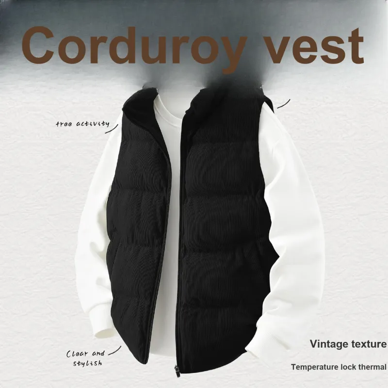 [Флисовая подкладка, вельвет, жилет] Черный (Tb45 Минималистский стиль с квадратным логотипом на левом нижнем кармане)